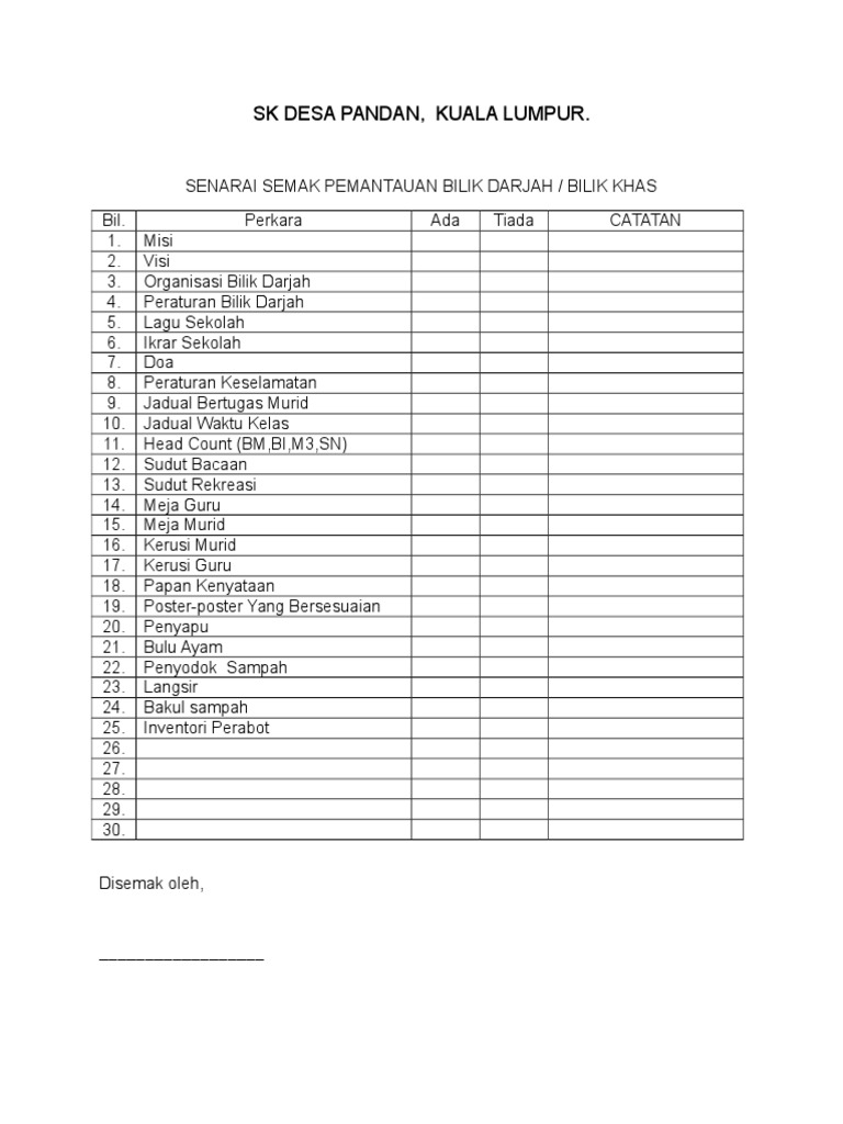 Senarai Semak Bilik Darjah 2018 Pdf